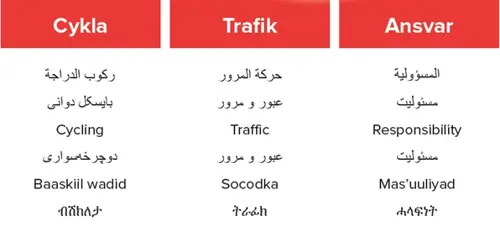 Här hittar du de tio kapitlen i informationspaketet "Cykla säkert - på lätt svenska". Du kan även ladda ner och skriva ut informationen.