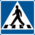 Här får du gå över vägen, men du bör inte cykla. Kliv i stället av cykeln och led den. Fordon ska stanna för den gående. Du som gående har skyldighet att vara uppmärksam på fordon. Sök ögonkontakt med bilförarna så att du vet att de sett dig.