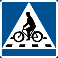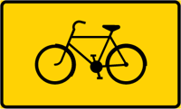 Cykelled. Märket anger en särskilt anordnad cykelled. Märkets färgsättning kan variera.
