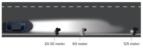 Om du har mörka kläder upptäcker en bil med halvljus dig på 20-30 meters avstånd och om du har ljusa kläder syns du från 60 meter. Om du bär reflex ser bilen dig redan på 125 meters avstånd.